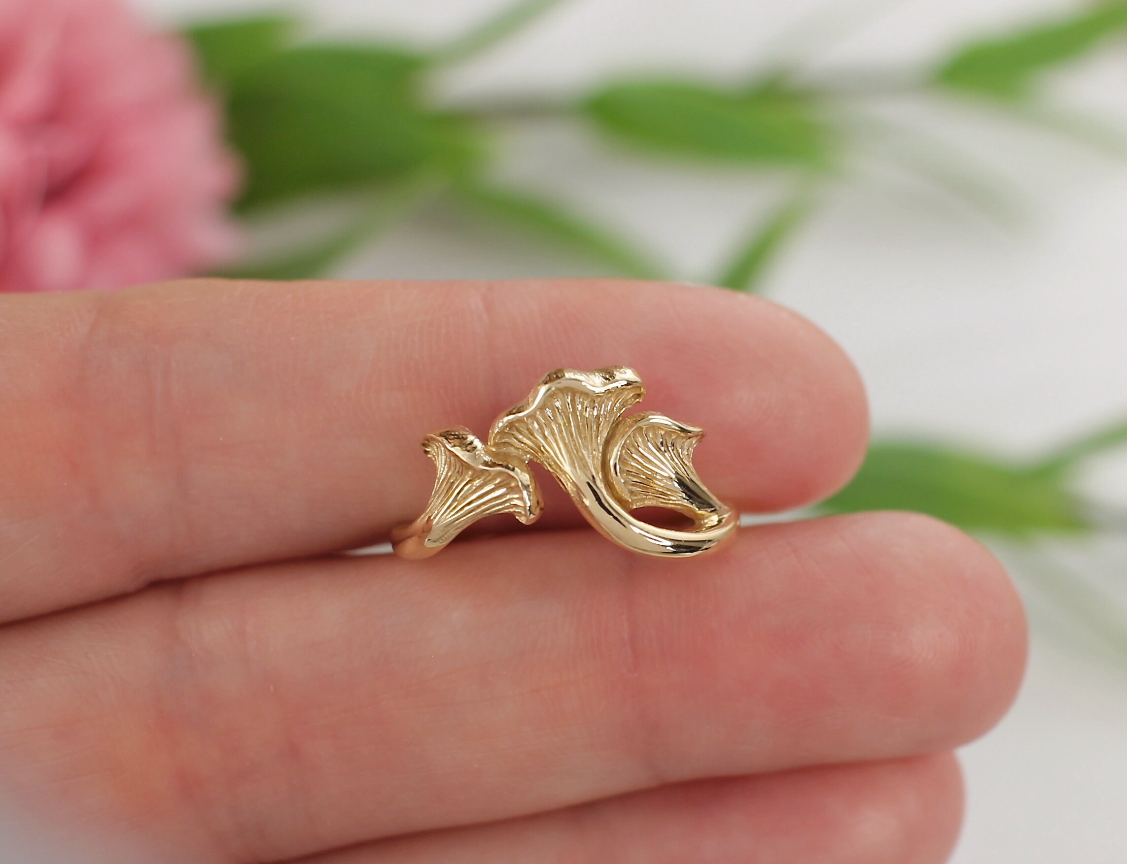 Sterling Silver Chanterelle Mushroom Ring Silver Or Gold Etsy De